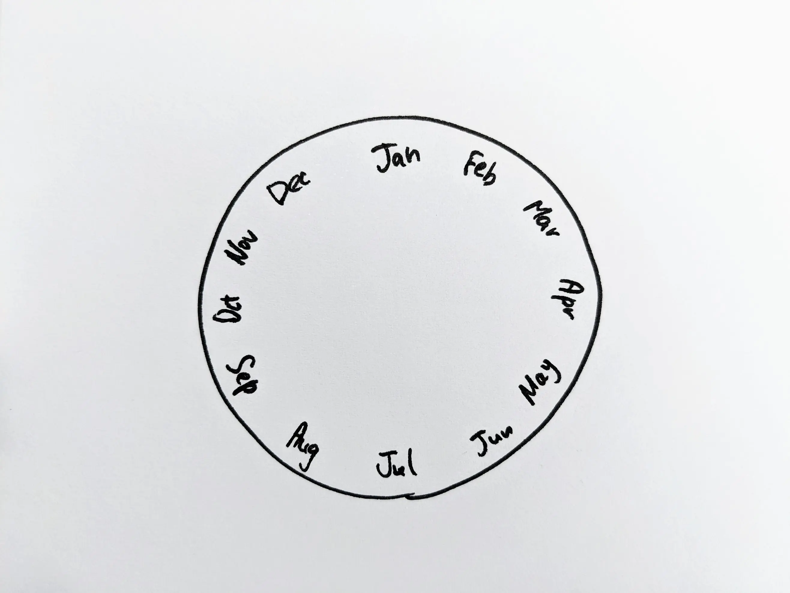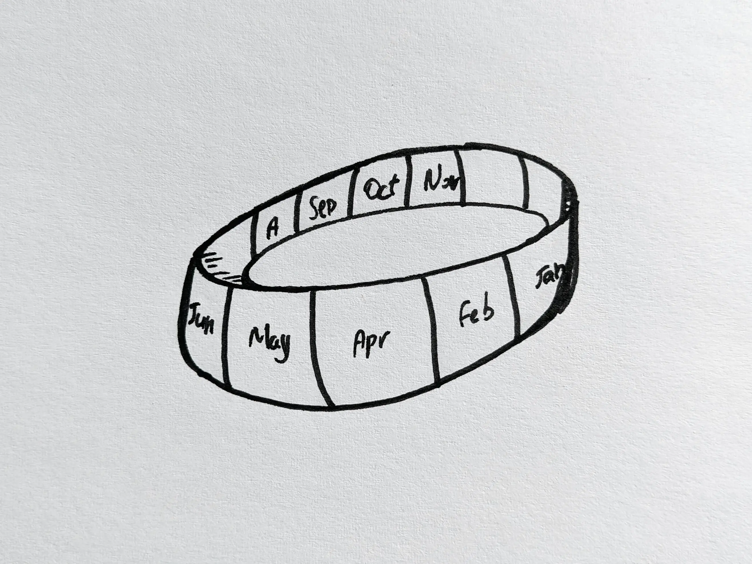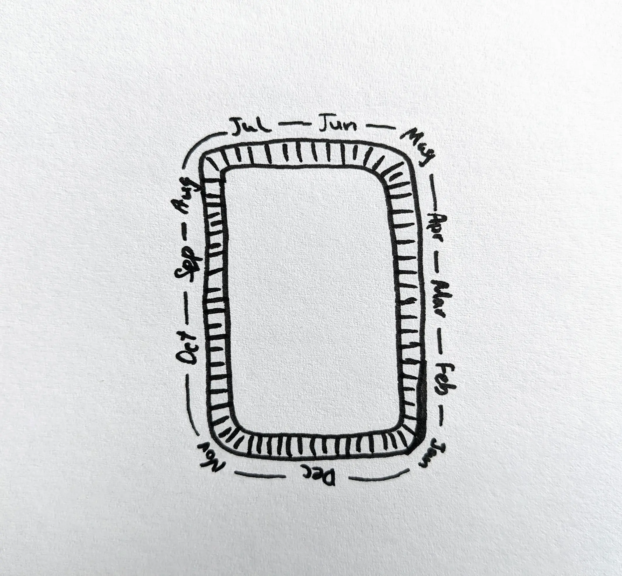 It is a circle with 12 months. January at the top, and the rest of the months going clockwise. It’s a static image that is always the same regardless of what time of year it is. Very much like the face of a wall clock.
