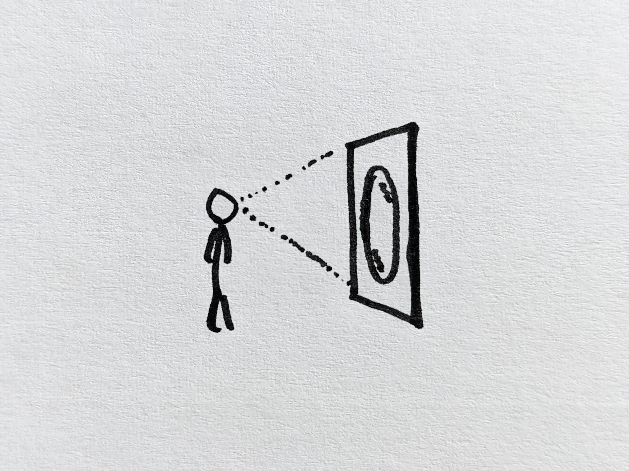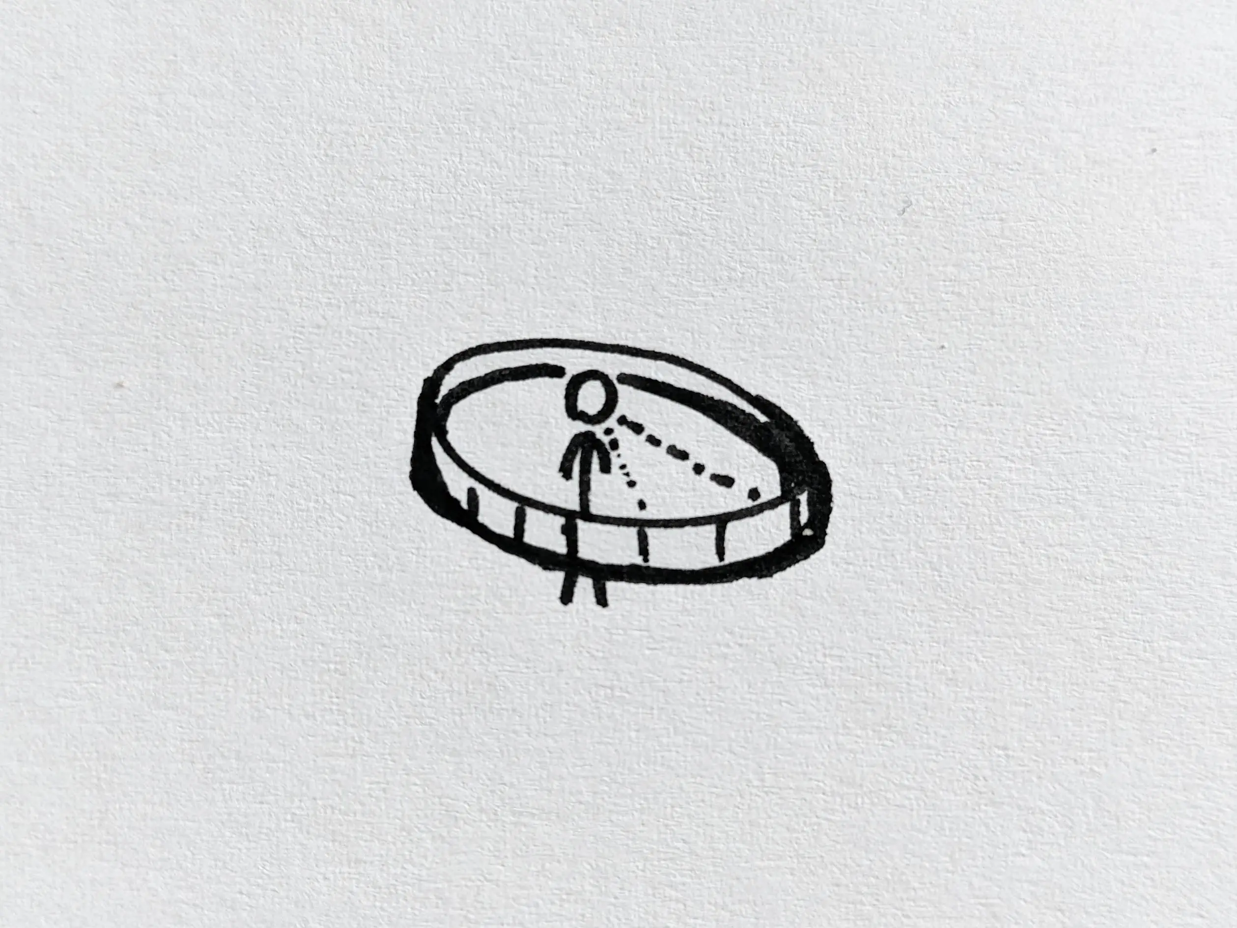 More doodles about the perspective of the observer, i.e. what the person imagines seeing through their eyes.